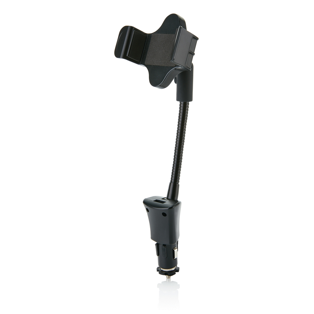 Зарядний пристрій для авто з підставкою для телефону, чорний