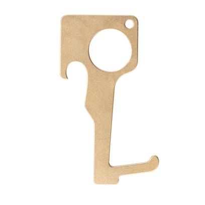 Цей латунний (62% мідь і 38% цинк) інструмент є безконтактний спосіб відкривати двері і використовувати загальні поверхні такі як каси, ліфти або банкомати. Латунь має унікальний антимікробними властивостями поверхні тому 99% всіх бактерій НЕ виживуть на цьому металі. Візьміть брелок з собою, щоб ви були впевнені, що вам не потрібно торкатися до громадських поверхнях, якщо в цьому немає необхідності.
