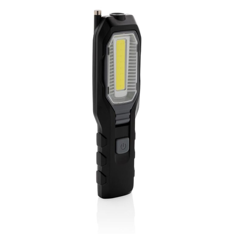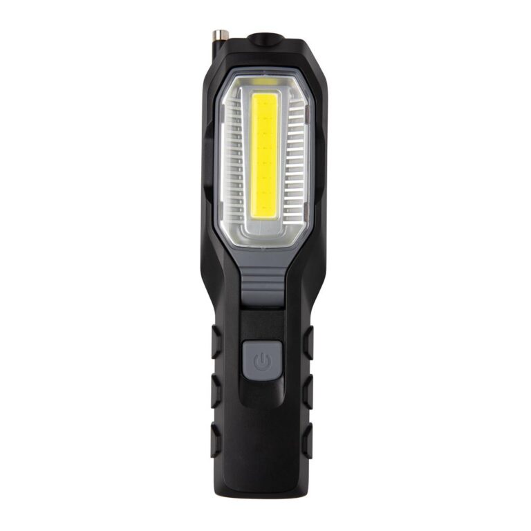 Багатофункціональний ліхтар 1W з 2 режимами: кемпінг (COB) і прожектор (LED). Регульований кут нахилу. Ліхтар оснащений потужним магнітом і рухомим крюком, які дозволяють зручно розмістити пристрій для підсвічування робочої зони. Крім того, з його допомогою можна зібрати дрібні металеві деталі з підлоги завдяки висувному телескопу 20 см з магнітом. Максимальна довжина LED променя до 50 метрів, а яскравість – 80 люмен. COB лампа 230 люмен. Батарейки в комплекті.