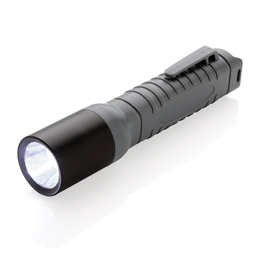 Яскравий та легкий ліхтарик ідеально підійде для подорожей на природу. Зроблений з матеріалу ABS та алюмінію, оснащений затиском, завдяки якому його легко брати із собою, куди б ви не пішли. Батарейки у комплекті. 180 люмен, час роботи 2:00. Світить з відривом до 200 метрів. IPX 4. Product size (cm): 3,8 x 3,8 x 15,5 Net item weight (gr): 75 Gross weight item (gr): 113