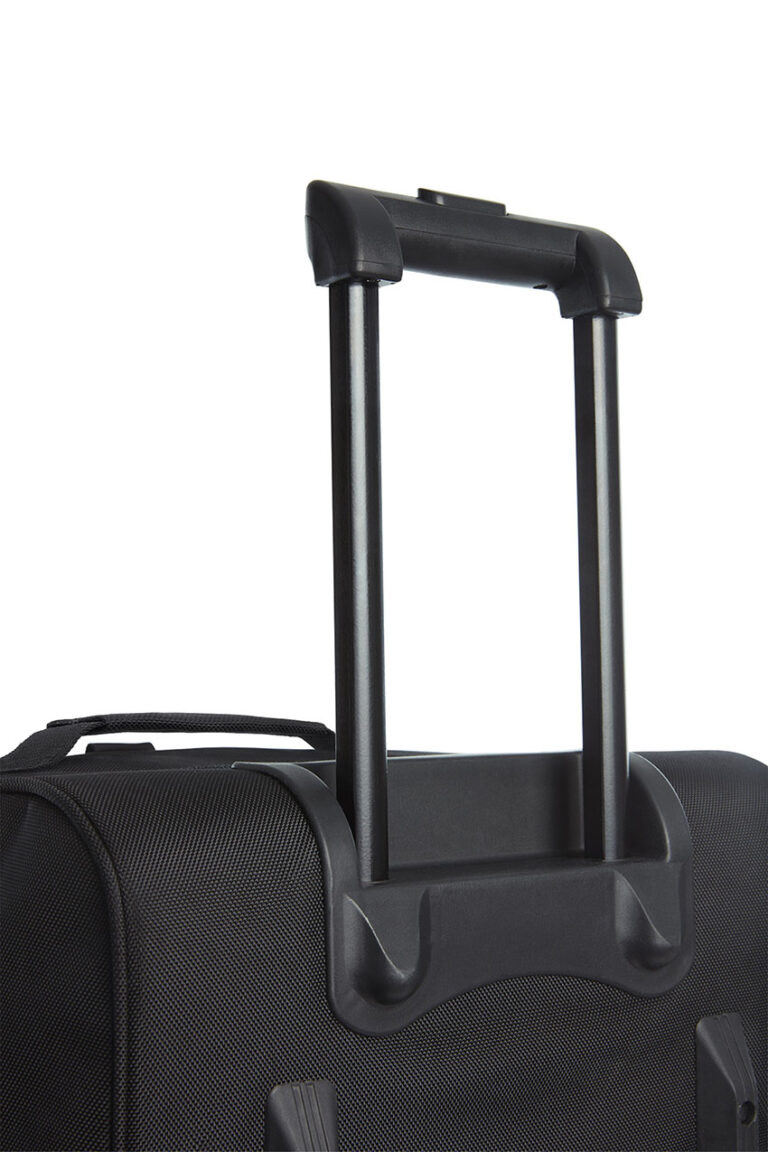 Просторе основне відділення на блискавці; передня кишеня на блискавці з декоративною прострочкою; телескопічна опора; легкі ролики; ручки з м’якими ручками; знімний регульований по довжині ремінь через плече з наплічником висота (см): 32 ширина (см): 66 глибина (см): 35