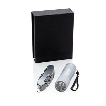Набор Quatro: мультитул и фонарик, серебро