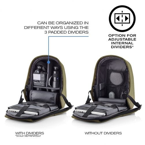 Рюкзак Bobby Hero с защитой от карманников, зеленый